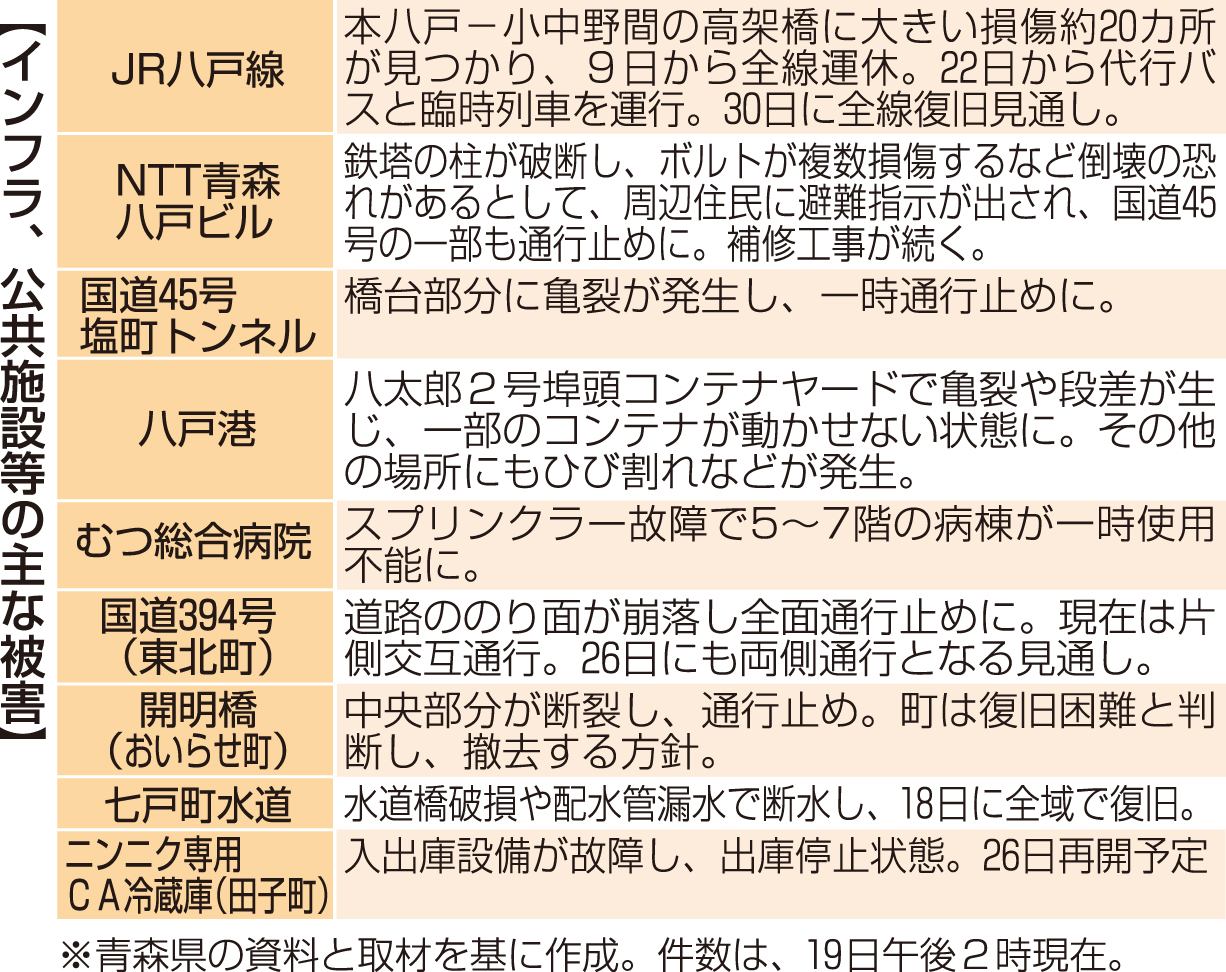 東北新幹線や青い森鉄道、八戸線など運転再開めど立たず