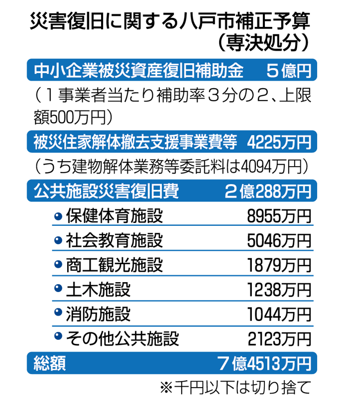 【八戸震度6強】市に国の支援法適用 住宅被害世帯に最大300万円支給