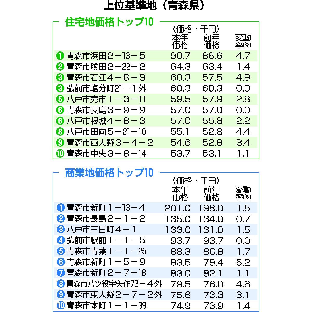 住宅地3年連続、商業地34年ぶり上昇 /26年青森県公示地価